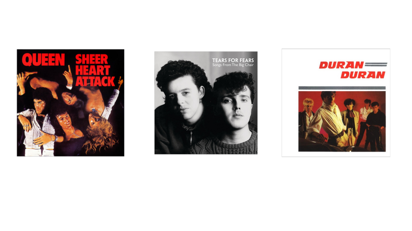 | duran duran, tears for fears, queen, l'arc en ciel, v-kei, j-rock,70s/80s rock, 80s synthpop & sophisti-pop, classic rock etc... |